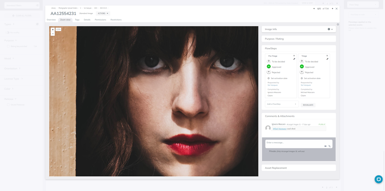 This entails a team reviewing all incoming work and applying a pre-approved or pre-rejected status to your images. A second team then reviews pre-approved and pre-rejected before applying the final status.